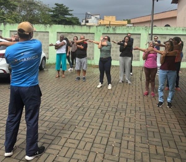 Durante o evento os aposentados também realizaram atividade de alongamento coletivo e verificação de pressão arterial, em parceria com as Secretarias de Municipais de Esporte e Saúde.